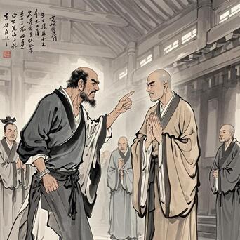 有一天,一位老僧找到他,责备他的行为。大师听后,微笑反驳道:“你不过像苍蝇蚊虫,只知道追逐腥臭,哪里懂得龙和鹤的高远心境呢?我的道行,你又怎么能理解呢?我内心清明,只是外表混沌罢了,哪里像你这般狭隘没有气度?”